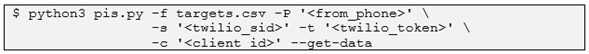 Figure 5. Example output of the PhishInSuits tool. Twilio is a third-party API for programmatically sending SMS messages. (Source: Secureworks)