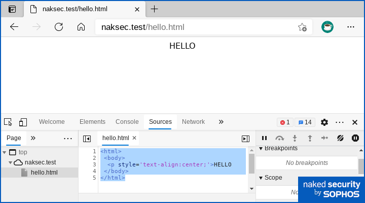 We set up a Windows IIS server and created this simple hello.html file for it to use: