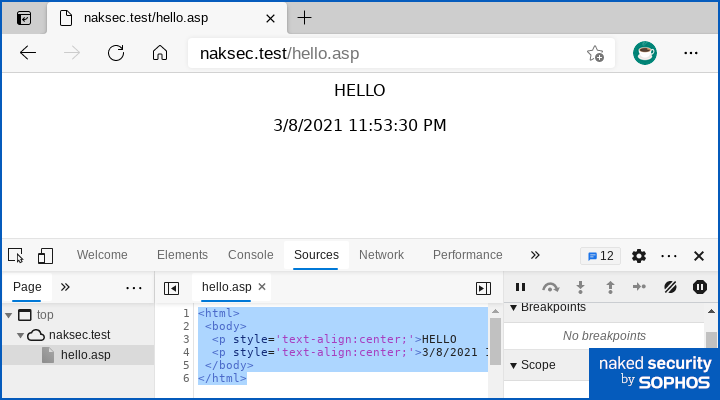 Life isn’t that simple, however, so let’s see what happens if we create a file called hello.asp instead.