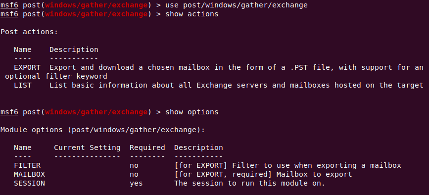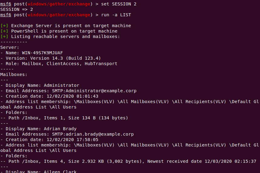 Ongoing work by the SophosLabs Offensive Security team in creating proof-of-concept Red Team tools has borne fruit in what is likely to be the first of many releases to the Metasploit framework. The tool, called metasploit_gather_exchange is not an exploit against one of the numerous Exchange vulnerabilities Microsoft fixed this month and in December, but a post-exploitation data gathering tool that simplifies the retrieval of mailbox data from compromised Exchange servers that are undergoing penetration tests.