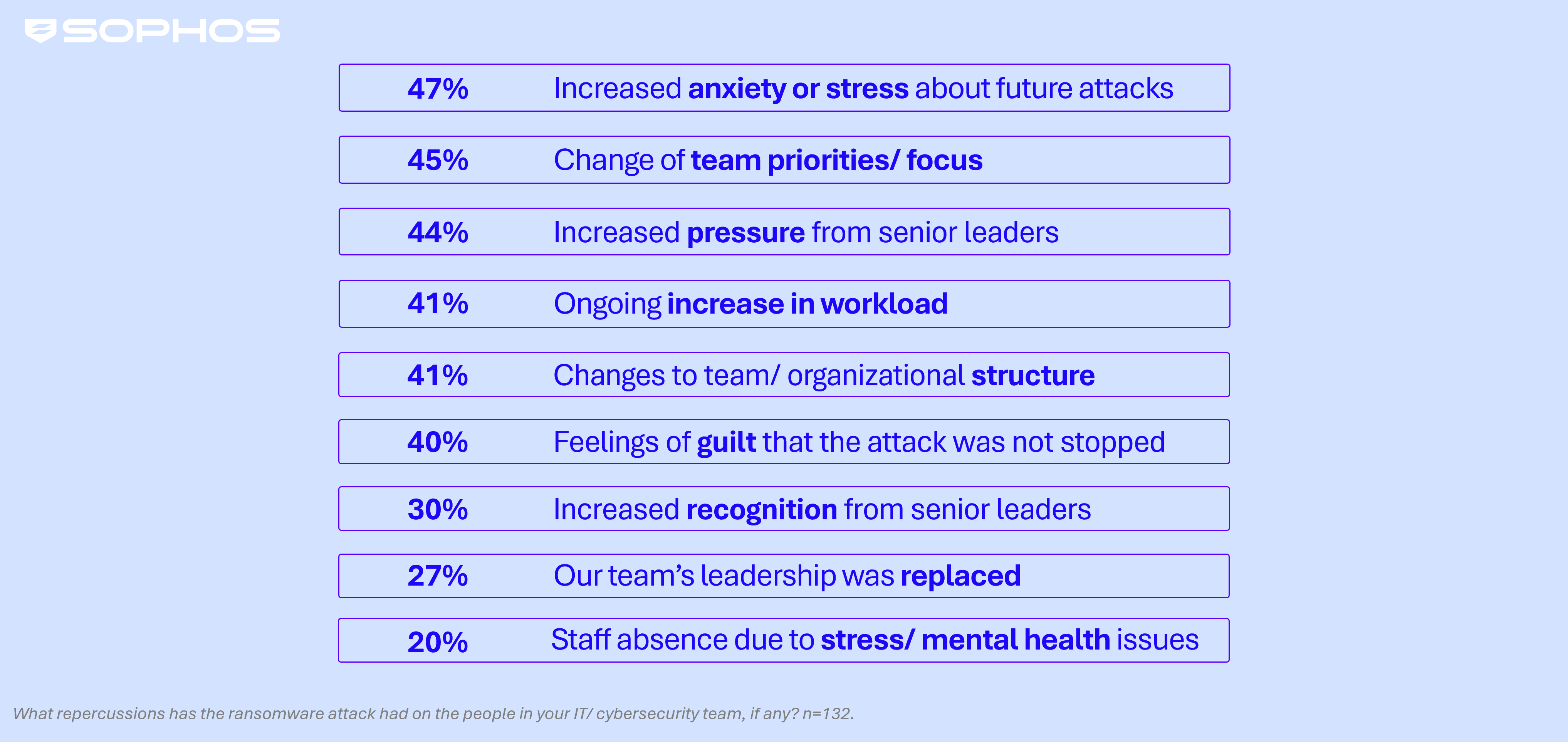 El ransomware tiene un coste humano, ya que provoca estrés y ansiedad entre los equipos de TI y ciberseguridad del sector