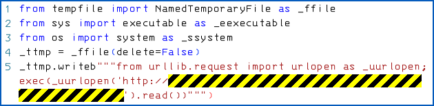 - Installed a bunch of related Python packages that downloaded and launched the final malware. According to Checkmarx, the malware was buried in legitimate-looking packages that were listed as so-called supply-chain dependencies needed by the alleged “unfilter” tools. But the attacker-supplied versions of those dependencies had been modified with a single additional line of obfuscated Python code to fetch the final malware.