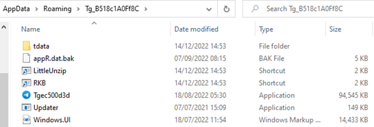 Los componentes de carga lateral y el enlace de inicio solo se crean cuando se ejecuta el enlace Telegram del escritorio. Esto podría ser un truco anti análisis, ya que los sandboxes de análisis dinámico no verían los archivos sideloader descartados.