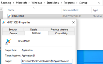 El instalador también crea un archivo de acceso directo en el directorio de inicio del usuario. De esta forma, el malware establece la persistencia y permite la ejecución automática tras el inicio del sistema.