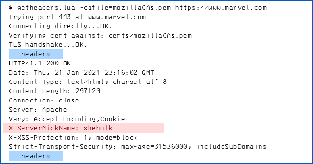 Marvel’s website adds a header to tell you which comic book hero the server you visited is named after.