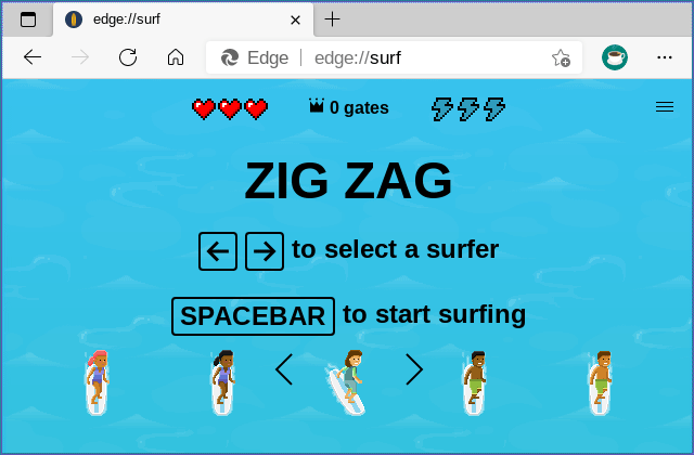 Having said that, even the very latest version of Microsoft Edge contains an openly secret surfing game that you can access by visiting the special URL edge://surf: