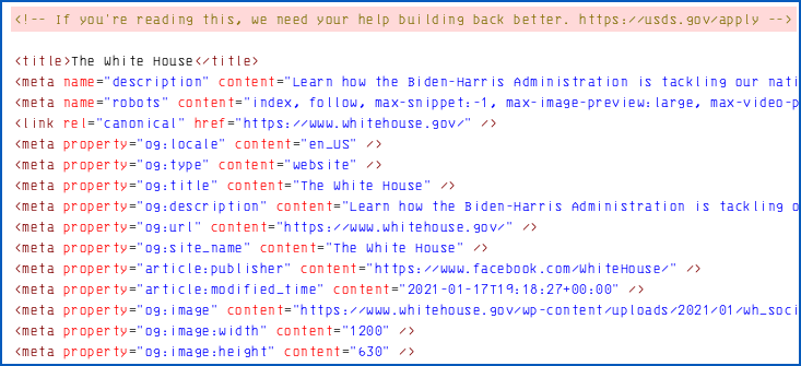 …which was embedded as an HTML comment at the top of every web page on the new administration’s White House website: