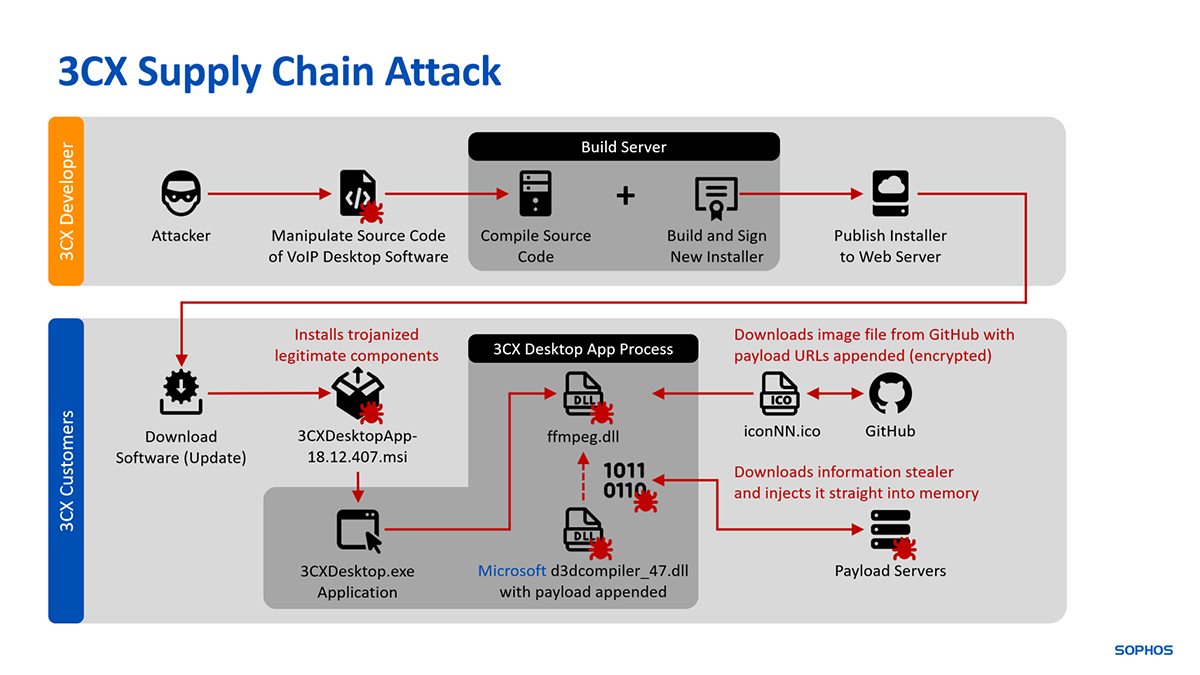 Billet inspiré de Update 2: 3CX users under DLL-sideloading attack: What you need to know, sur le Blog Sophos.
