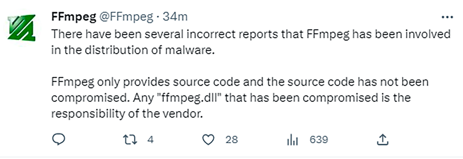 Figure 3 : Quand ffmpeg est intervenu sur Twitter pour défendre son code