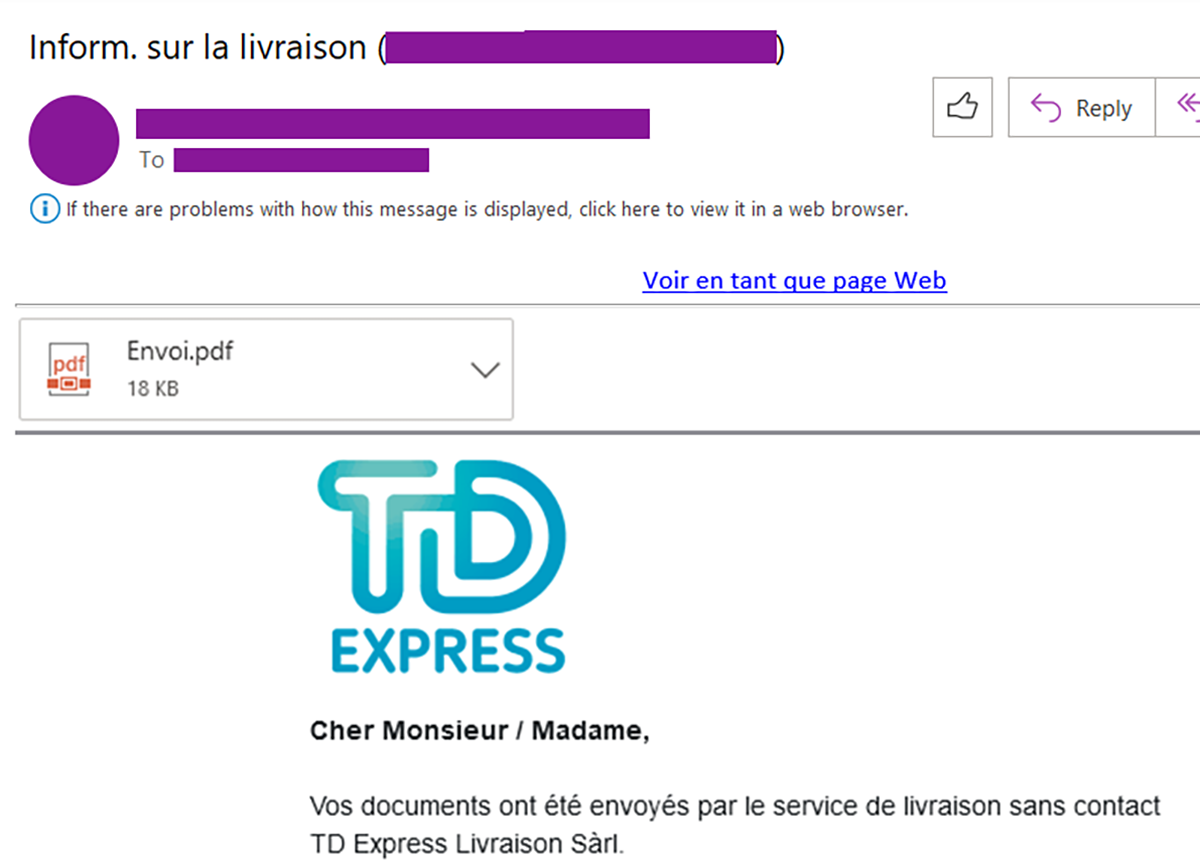 L’email avec sa “pièce jointe PDF”…
