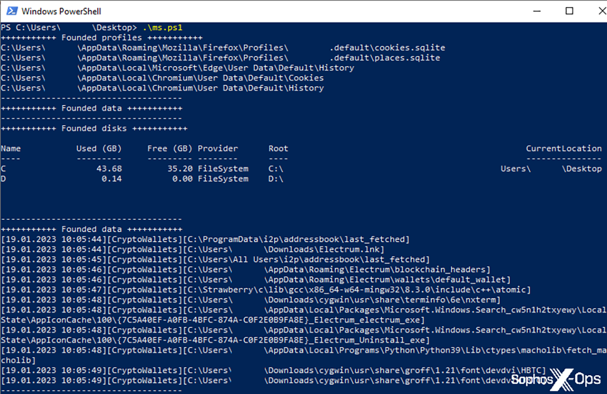 En examinant les logs à la recherche de preuves, nous avons trouvé un quatrième script PowerShell (nommé ms.ps1) que les attaquants n’ont pas réussi à supprimer. Ce script est un outil global de collecte de données conçu pour récupérer les emplacements des données sensibles et, éventuellement, les stocker dans C:\ProgramFiles\matches.txt .