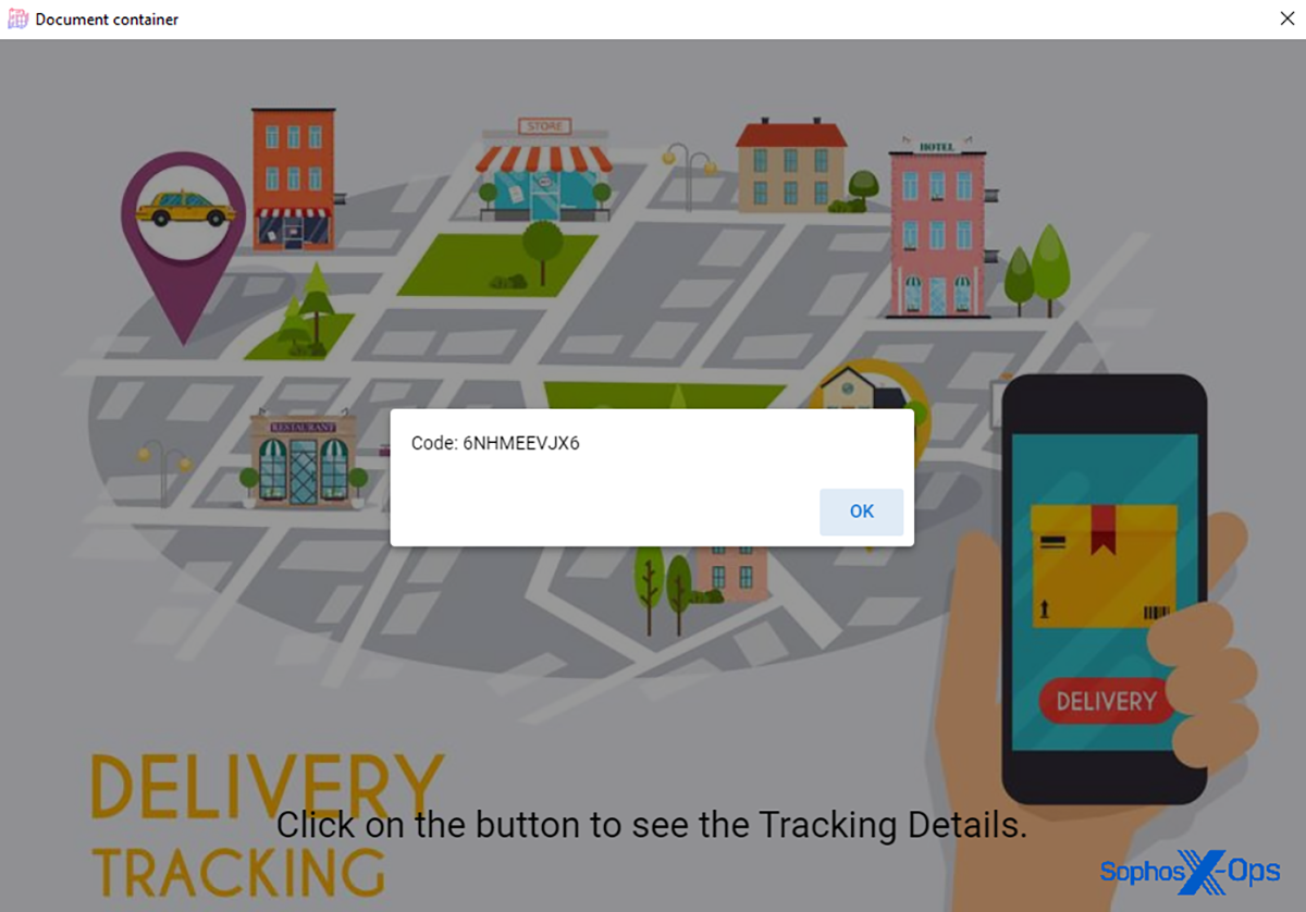 Ce mécanisme d’attaque a semblé inhabituellement complexe à nos analystes : en effet, l’appel téléphonique incitant la cible à cliquer sur l’email ; l’email spécialement conçu sans texte dans le corps ; le site Web enregistré par l’attaquant avec un nom de domaine personnalisé associé au mot “livraison” était utilisé pour héberger un fichier à télécharger, mais cette complexité semblait avoir un but.