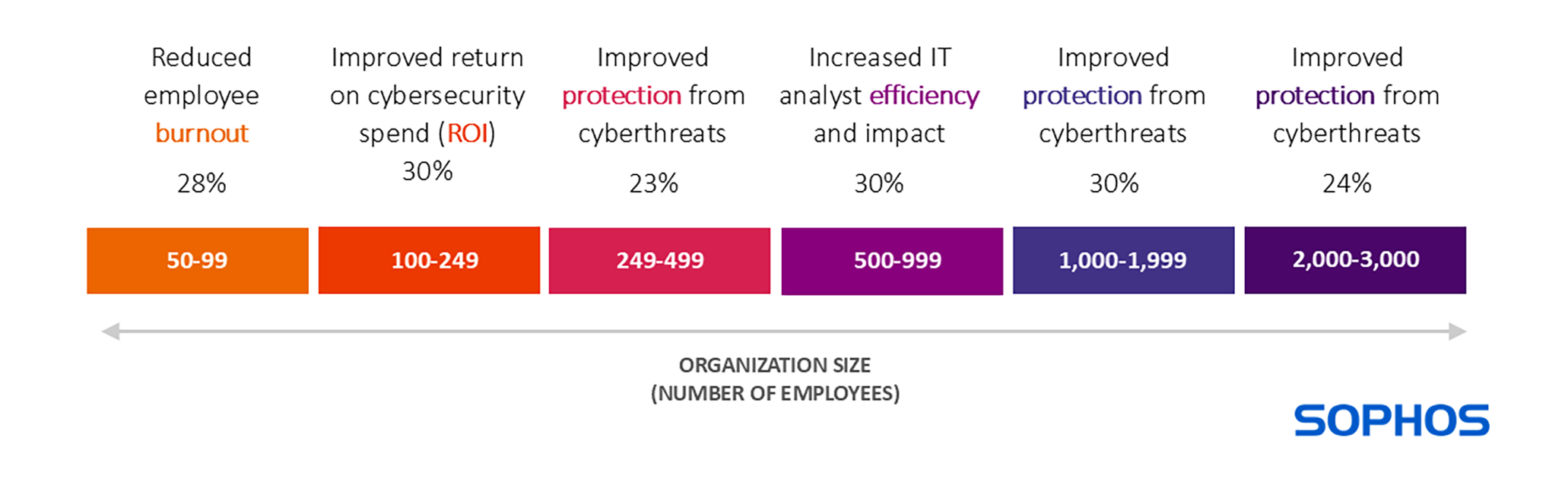 À l’inverse, soulignant leur besoin de rigueur financière stricte, les entreprises comptant entre 100 et 249 employés donnent la priorité à un meilleur retour sur investissement en matière de cybersécurité. Les grandes entreprises comptant entre 1 000 et 3 000 employés apprécient le plus une meilleure protection contre les cybermenaces.