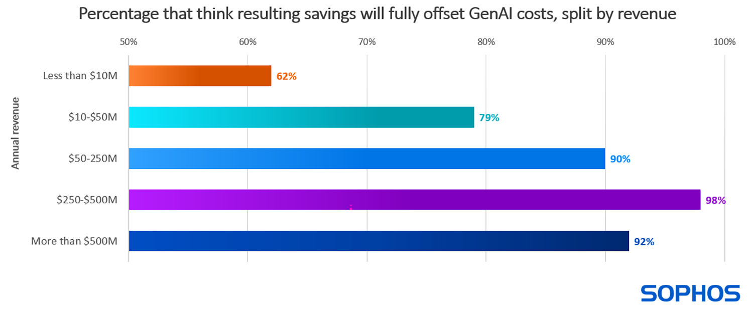 Malgré ces risques d’augmentation des prix, la plupart des entreprises considèrent GenAI comme un moyen de réduire leurs dépenses globales en matière de cybersécurité, avec 87% des personnes interrogées se disant convaincues que les coûts de GenAI dans les outils de cybersécurité seront entièrement compensés par les économies qu’elle génèrera.