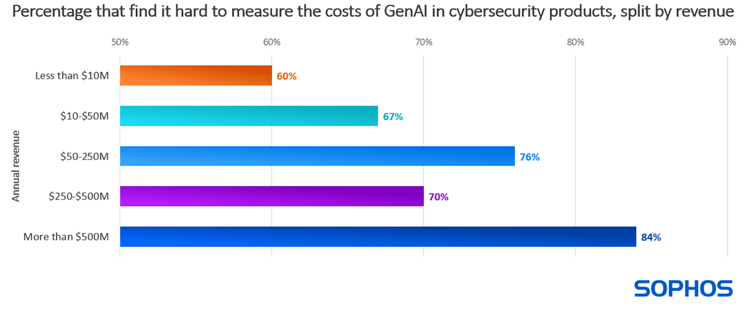 Les capacités GenAI de haute qualité présentes dans les solutions de cybersécurité sont coûteuses à développer et à maintenir. Les responsables informatiques/cybersécurité des entreprises de toutes tailles sont attentifs aux conséquences de ces dépenses en matière de développement, 80% d’entre eux déclarant qu’ils pensent que GenAI augmentera considérablement le coût de leurs produits de cybersécurité.