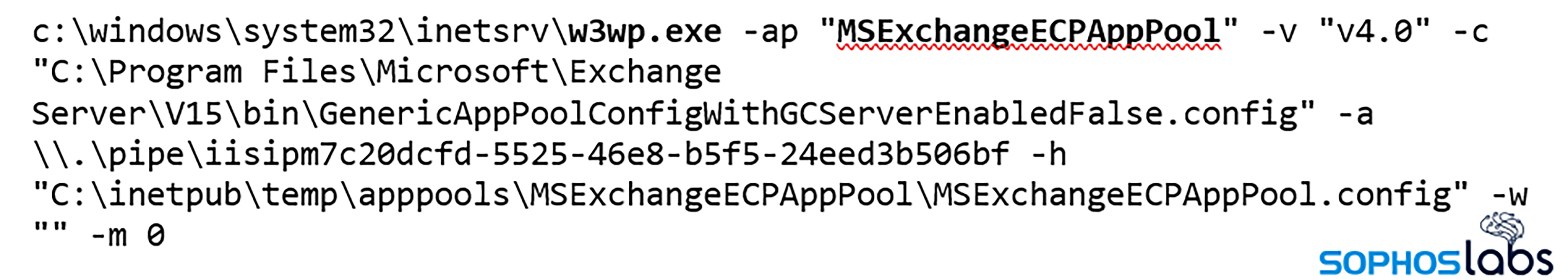 Le webshell a été écrit sur le disque par w3wp.exe, un processus de travail Internet Information Server (IIS) qui héberge l’EAC (Exchange Admin Center), auquel Microsoft a donné le nom interne ECP (Exchange Control Panel) :