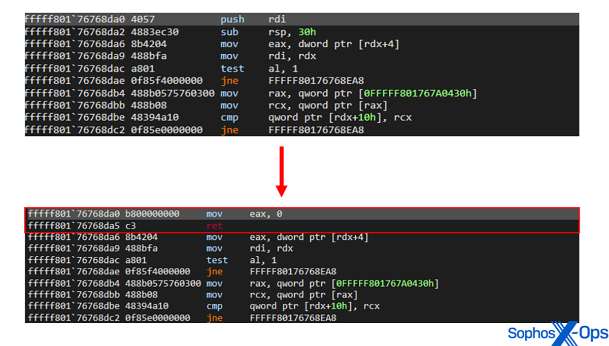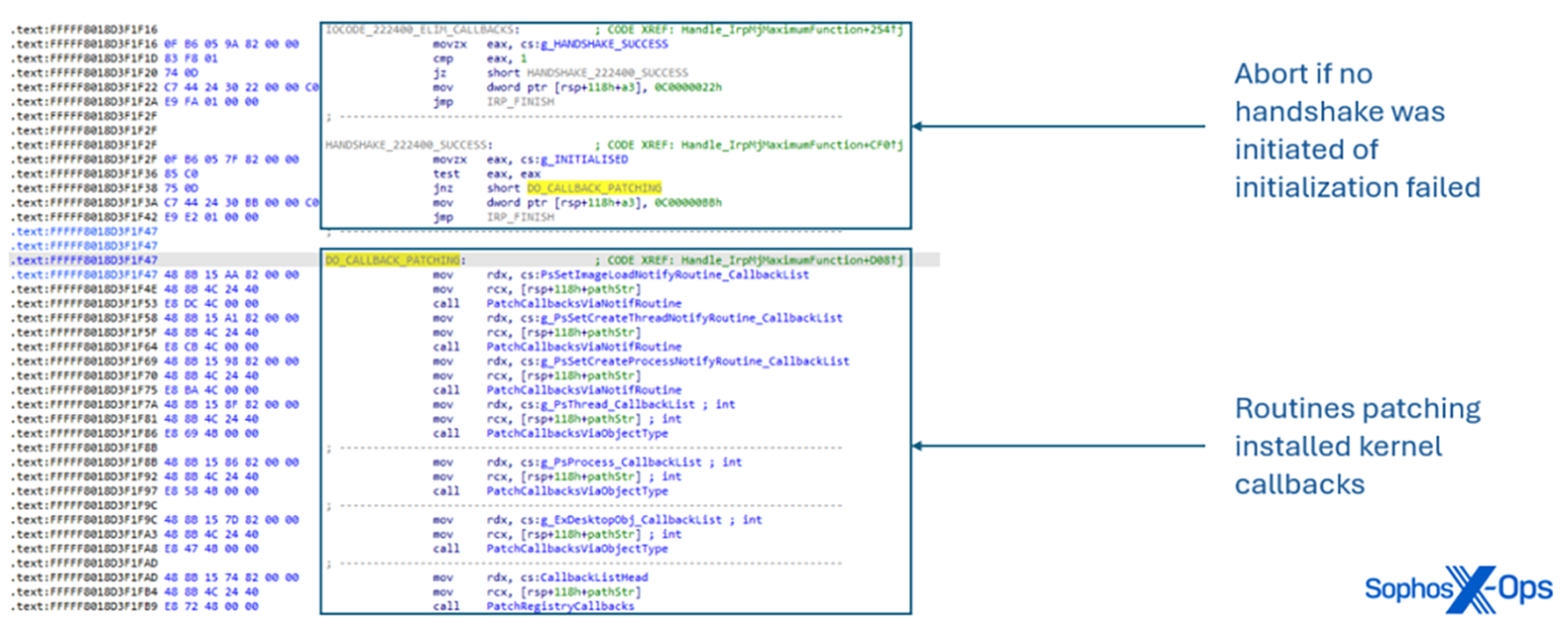 L’élimination de ces routines de rappel est souvent une étape critique pour rendre les produits EDR inefficaces. En 2022, nous avons également écrit sur un cas similaire où le ransomware BlackByte a abusé d’un pilote vulnérable légitime pour supprimer les routines de notification critiques du noyau.