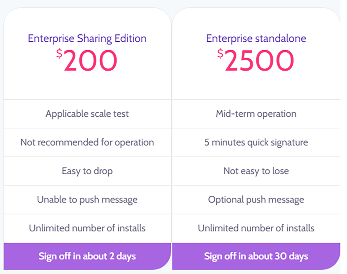 Les services Super Signature, qui utilisent des comptes développeur particulier plutôt que des comptes Enterprise, sont limités au niveau du nombre d’appareils sur lesquels les applications peuvent être installées et nécessitent l’UDID de l’appareil pour mener à bien l’installation. D’autre part, le service Enterprise Signature peut être utilisé pour distribuer des applications directement au niveau d’un plus grand nombre d’appareils gérés par un seul compte. Dans les deux cas, les applications n’ont pas besoin d’être soumises à l’App Store d’Apple pour vérification.