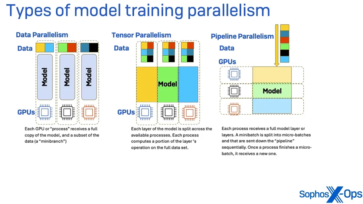 Figure 1 : une illustration des trois principaux types de parallélisme au niveau de l’entrainement des modèles.