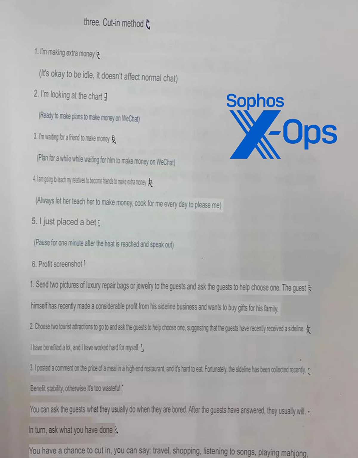Souvent, les opérateurs derrière les claviers sont victimes de ce trafic, souvent en provenance de pays comme la Chine, la Malaisie et l’Inde avec la promesse d’emplois mieux rémunérés. Ils sont formés via des scripts pré-écrits avec des instructions sur la façon d’interagir, ce qu’il faut dire à leurs victimes et comment les inciter à investir. S’ils veulent partir ou ne suivent pas le scénario, ils subissent alors des violences.