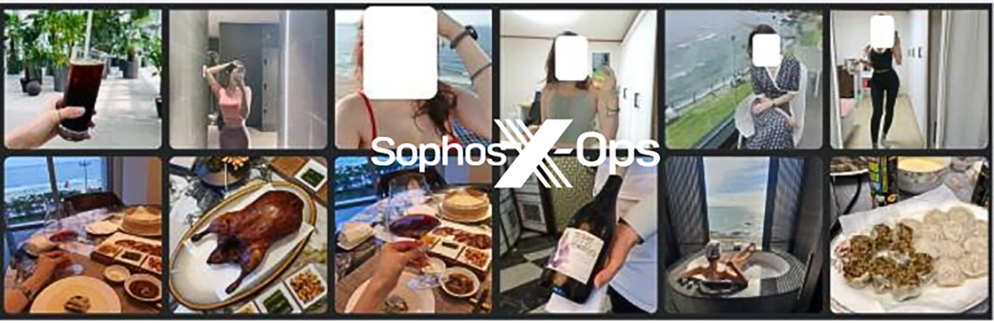 Figure 1 : La “vie” quotidienne d’une femme inexistante ; certaines images ont probablement été créées par les escrocs ou par un tiers moyennant finances, tandis que d’autres ont probablement été volées ailleurs sur Internet