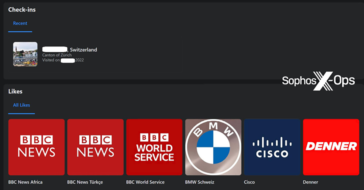 Pour maintenir l’illusion d’être de Londres, les cybercriminels se cachant derrière le profil ont publié des événements de BBC News, tels que les funérailles de la reine Elizabeth II, sur la chronologie Facebook du personnage en question. Le personnage a également “liké” et suivi des organisations qui ont manifesté leur intérêt pour la BBC et des entreprises occidentales bien connues.