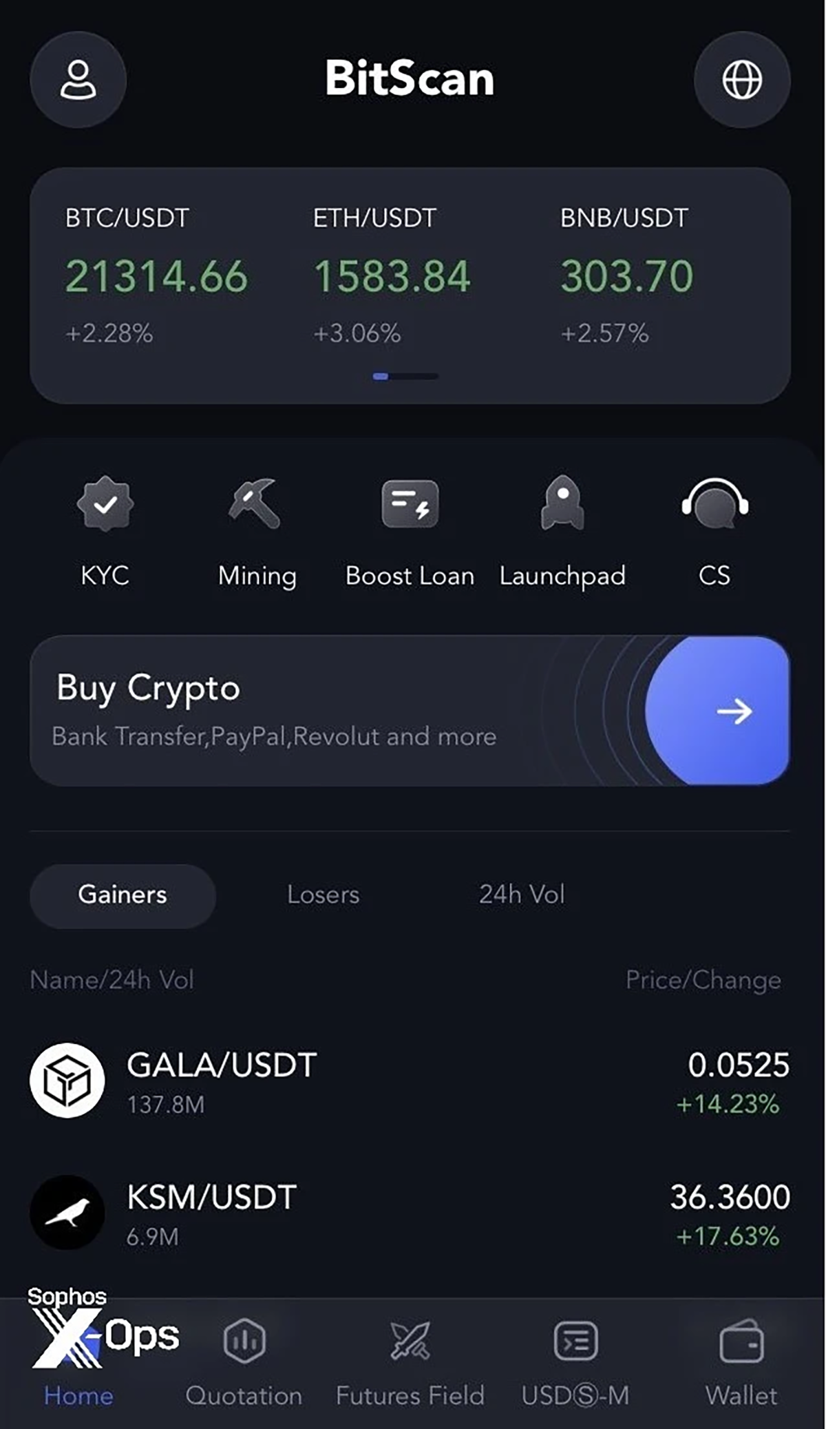 Figure 11 : L’interface de la fausse application MBM_BitScan, avec une option d’achat de crypto