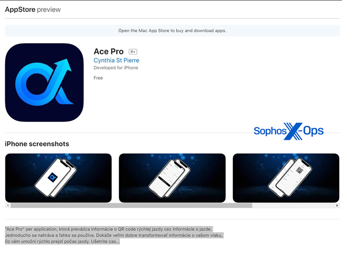 Figure 4 : La page de téléchargement de l’App Store pour Ace Pro, supprimée depuis
