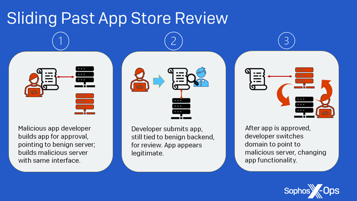Figure 7 : Comment les applications frauduleuses ont probablement échappé au processus de vérification d’Apple.