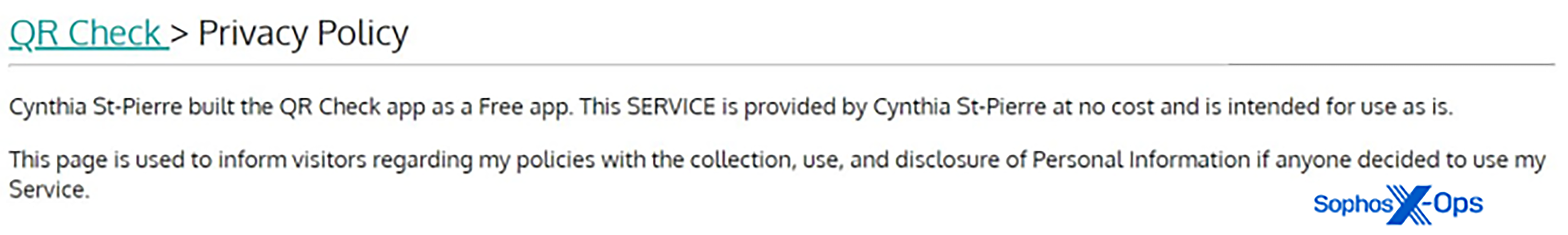 La politique de confidentialité de l’application la décrit également comme une application de type “QR Check”.