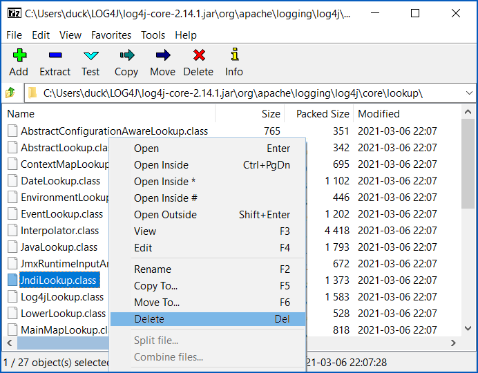 Navigate to lookup directory and right-click to delete JndiLookup.class.