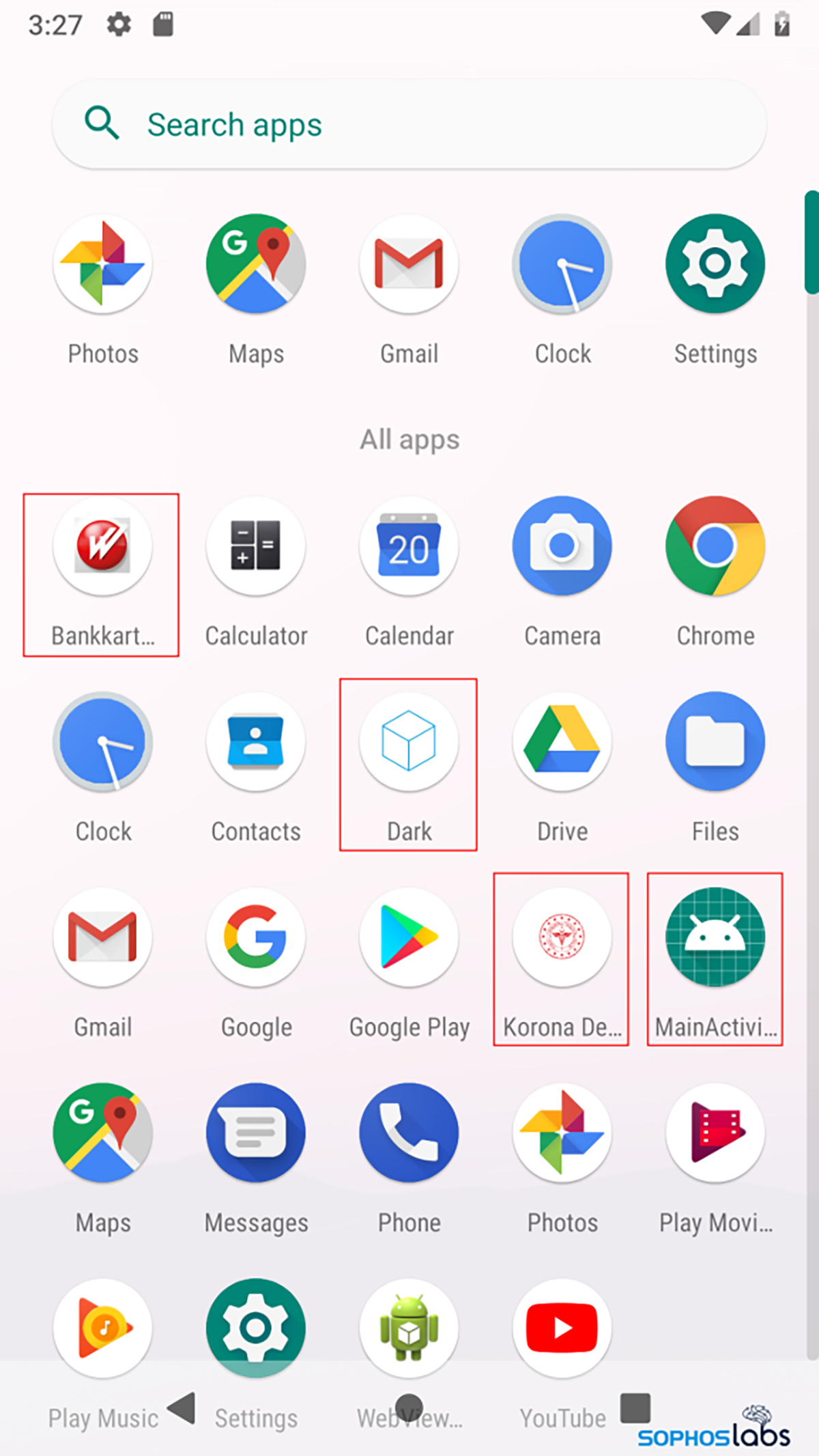 Le problème des malwares de Discord n’est pas seulement basé sur Windows. En menant une recherche par télémétrie, nous avons trouvé 58 applications malveillantes uniques qui peuvent être exécutées sur des appareils Android. Celles-ci comprenaient un certain nombre de malwares et de spywares focalisés sur les banques, comme indiqué par les détections Sophos ci-dessous :