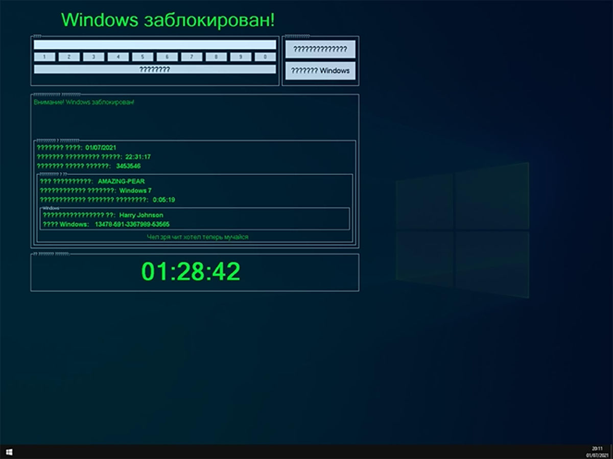 Une autre famille de malwares de type ‘verrouillage d’écran’, également largement présente dans le CDN de Discord, dénommé Somhoveran/LockScreen, ajoute un compte à rebours à la demande de rançon. Somhoveran utilise Windows Management Instrumentation pour collecter une “empreinte digitale” du système affecté et affiche certaines de ces données à l’écran.