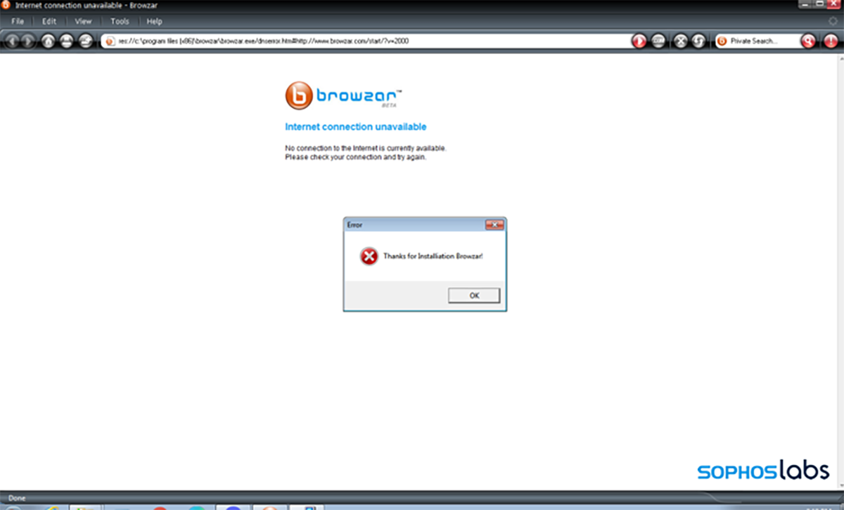 Un autre échantillon de malware que nous avons trouvé s’est présenté comme un programme d’installation de Browzar, un navigateur Web axé sur la confidentialité. Mais pendant qu’il installait le navigateur, il a également lancé l’Agent Tesla Infostealer.