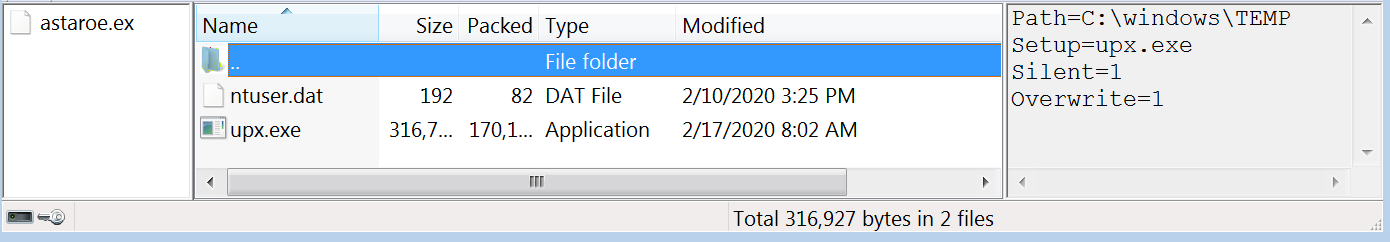 This component now is a WinRAR SFX dropper that drops another WinRAR SFX package. The top level dropper updates the bootkit configuration, while the internal layer contains config update for the cryptominer component.