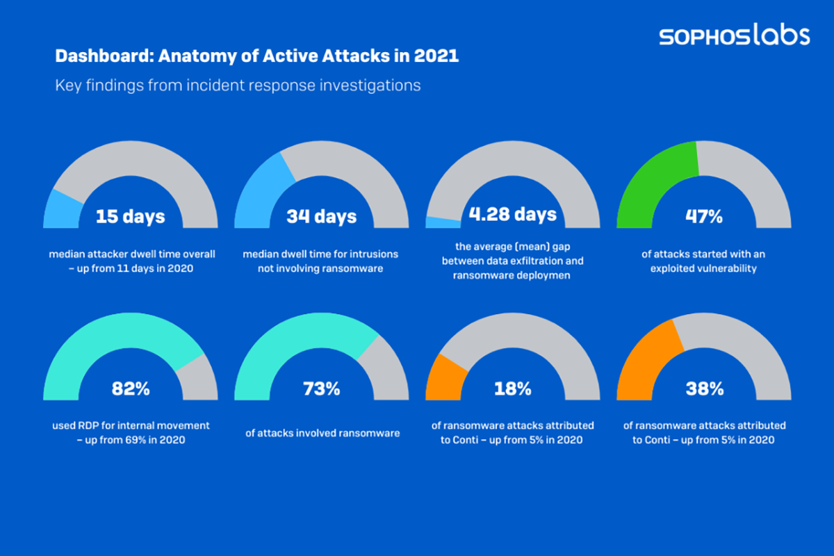 Figure 1 : Attaques en 2021, issues du Sophos Active Adversary Playbook 2022