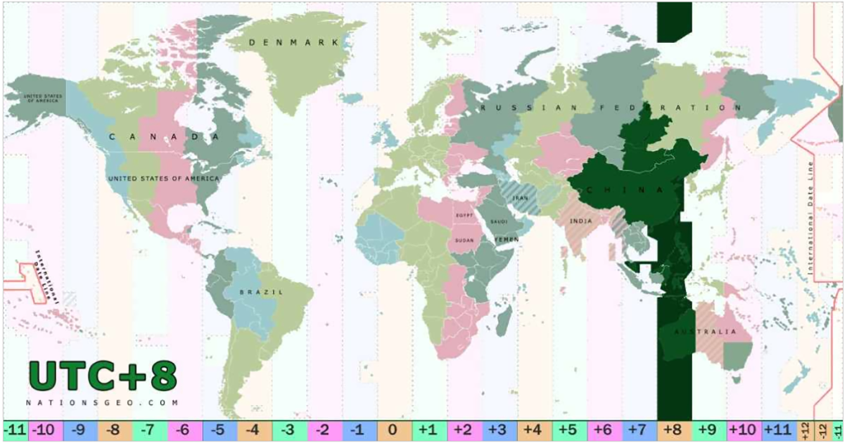 Figure 2 : UTC +8 est une zone certainement intéressante, mais elle n’est certainement pas proche de James basé à Londres (image de la carte fournie par nationsgeo.com)