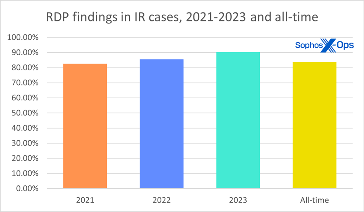 Figure 1 : Un premier aperçu de l’ensemble de données complet d’Active Adversary de 2023 montre que les abus du RDP augmentent.