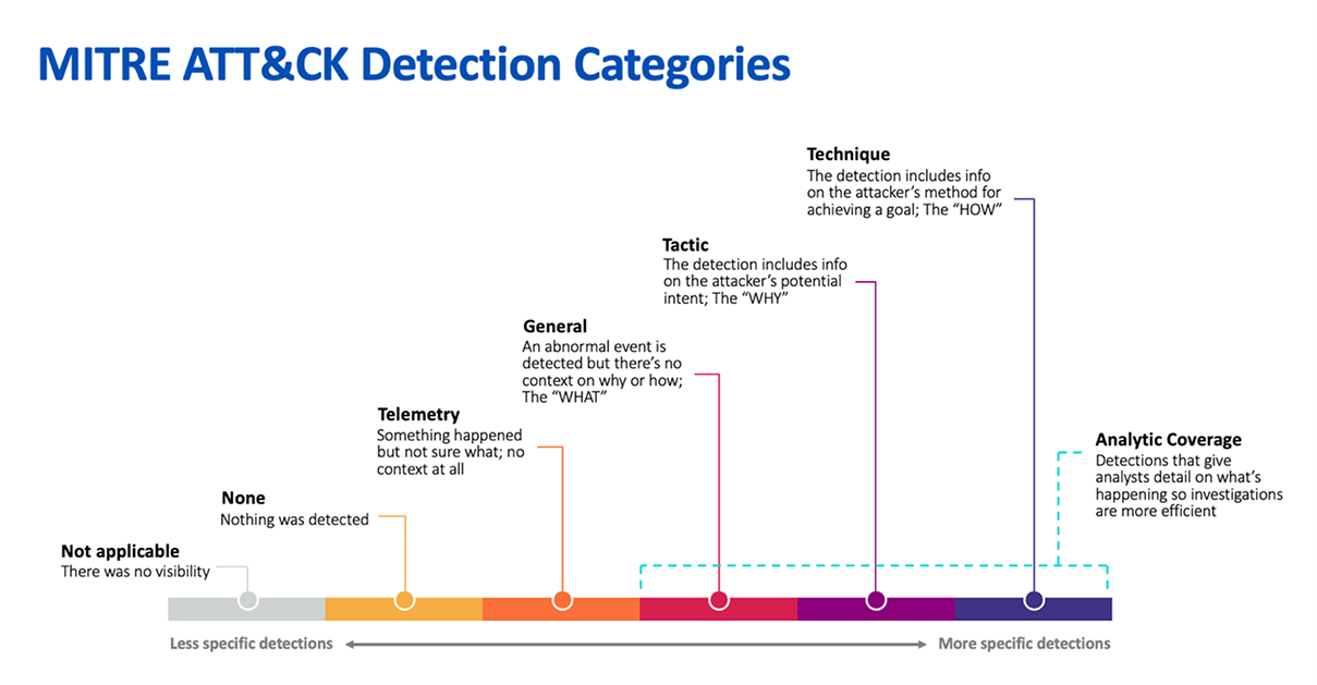Les détections classées dans les rubriques General, Tactic, ou Technique, sont regroupées sous la définition de “Analytic Coverage” (couverture analytique), qui est une mesure de la capacité de l’outil EDR à convertir la télémétrie en détections de menaces exploitables.