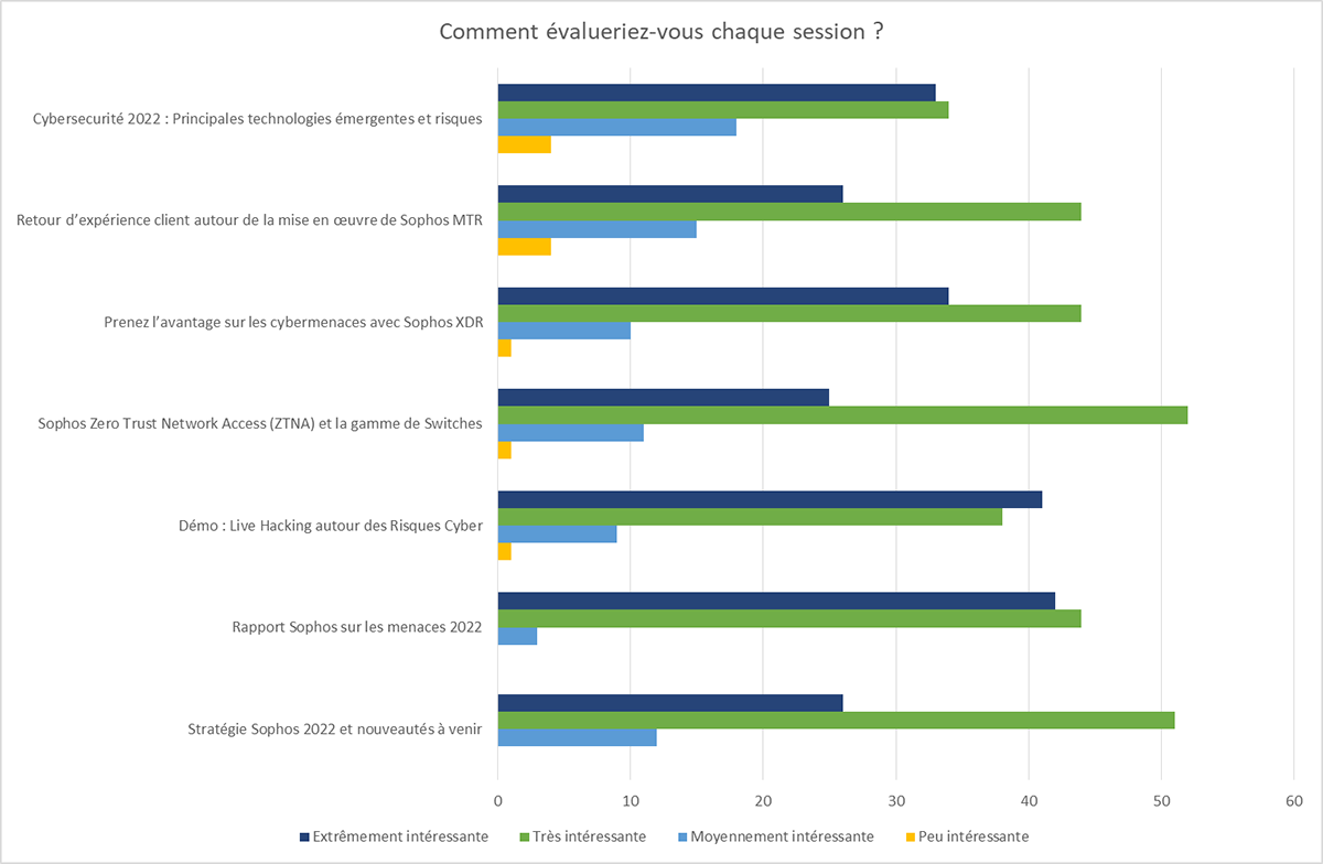 Les participants ont activement participé aux présentations et aux discussions via des sondages en direct et des questions-réponses ouvertes, partageant ainsi leurs expériences personnelles en matière de cybersécurité. Grâce à cette participation live, nous avons découvert une vision nouvelle, et révélatrice de la réalité à laquelle sont confrontés les professionnels de la cybersécurité aujourd’hui.