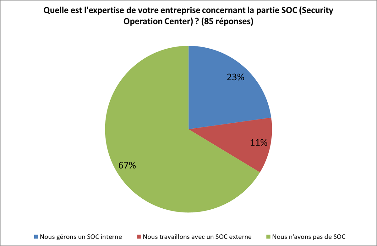 Les SOC (Security Operations Centers) ont été au cœur de cet évènement. Environ un tiers des participants ont un SOC, 23 % d’entre eux utilisant un SOC interne et 11% s’appuyant sur un SOC externe.