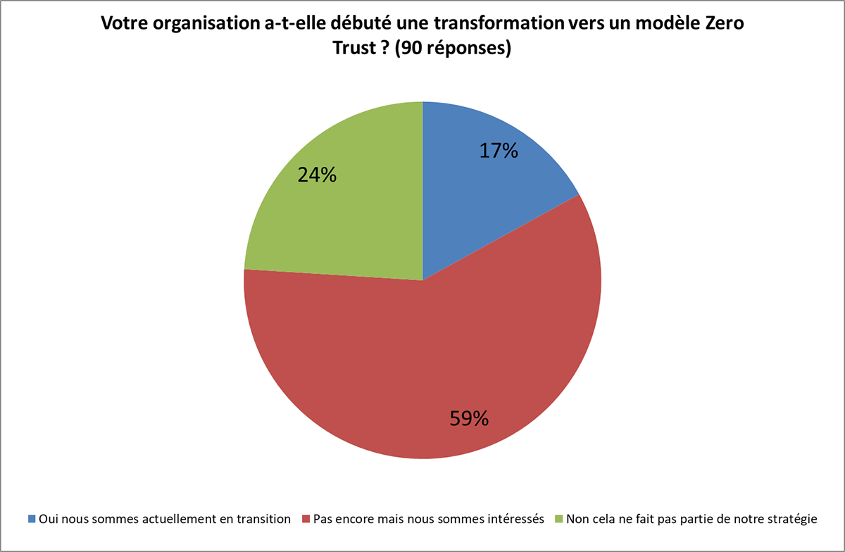 En ce début d’année Sophos vient de lancer Sophos ZTNA, sa solution innovante pour connecter en toute sécurité les utilisateurs distants aux applications. Nous avons profité de cette occasion pour questionner nos participants concernant l’adoption d’une approche Zero-Trust au sein de leur entreprise (Confiance-Zéro). Il est apparu que seulement 17% d’entre eux s’étaient véritablement engagés dans cette démarche, 59% étant en transition et 24% n’ayant tout simplement pas cette approche intégrée à leur stratégie.