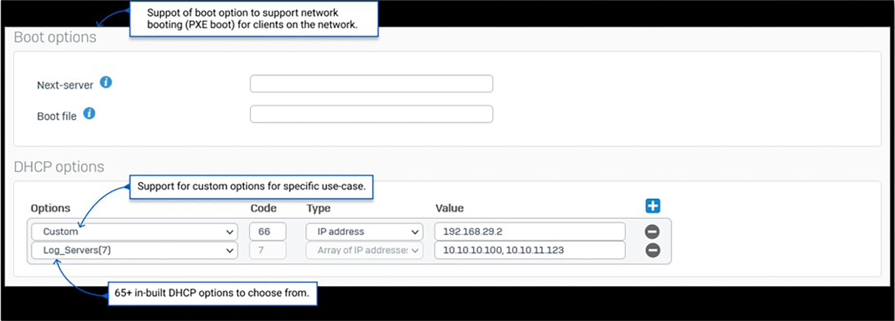 Configurations des options de démarrage DHCP : cette nouvelle fonctionnalité répond à une demande importante de nos clients et de nos partenaires, qui souhaitaient disposer d’options de démarrage DHCP (Dynamic Host Configuration Protocol) supplémentaires pour les clients sur le réseau, tels que les téléphones VoIP ou d’autres types d’appareils ayant des exigences DHCP particulières.