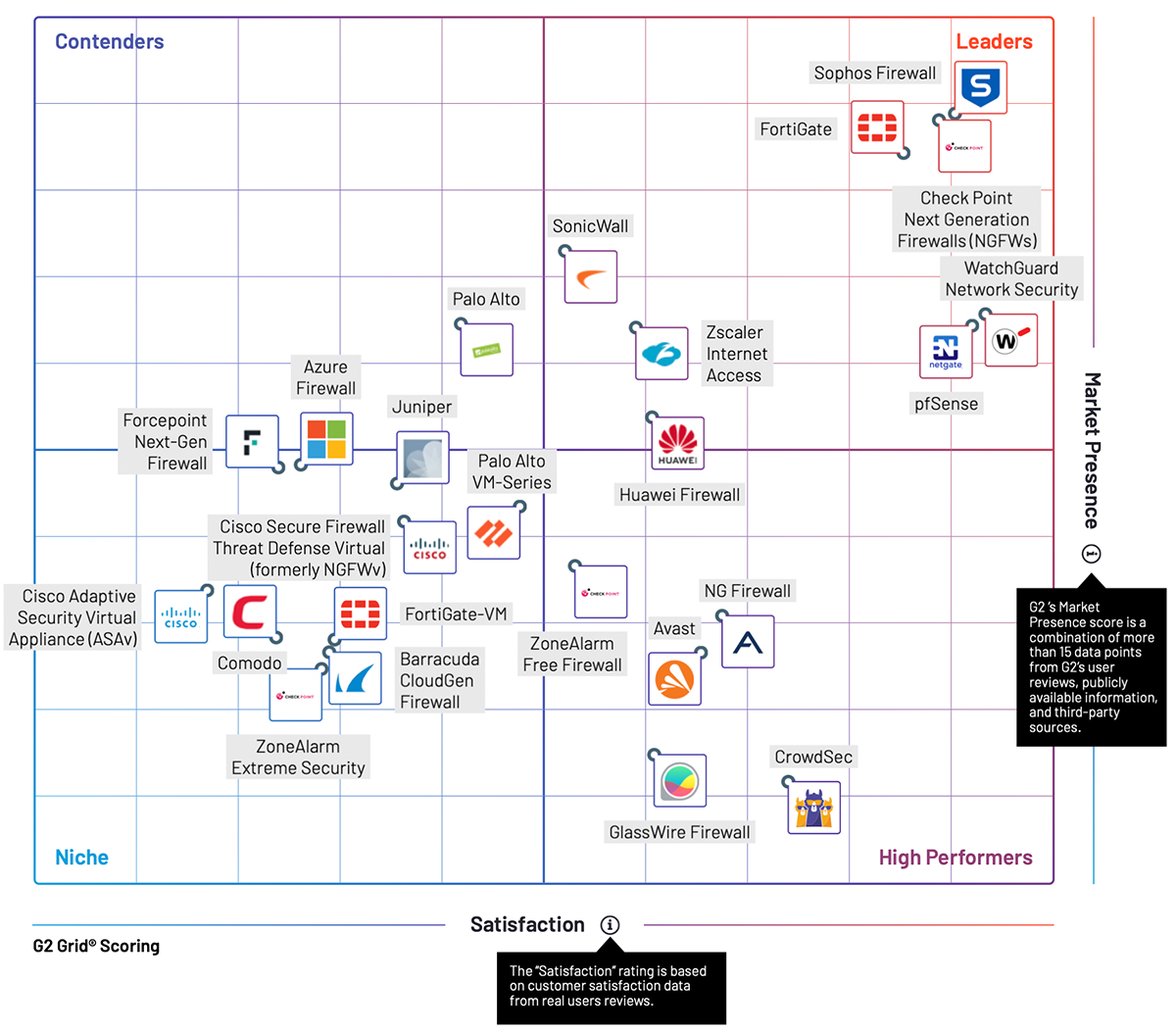 Sophos Firewall a été classé solution de pare-feu N°1 par les utilisateurs G2 dans les rapports Spring 2023. Les distinctions et classements G2 sont basés sur des avis de clients indépendants et vérifiés sur G2.com, la plus grande marketplace de logiciels et la plus importante plateforme d’évaluation par les pairs au monde.