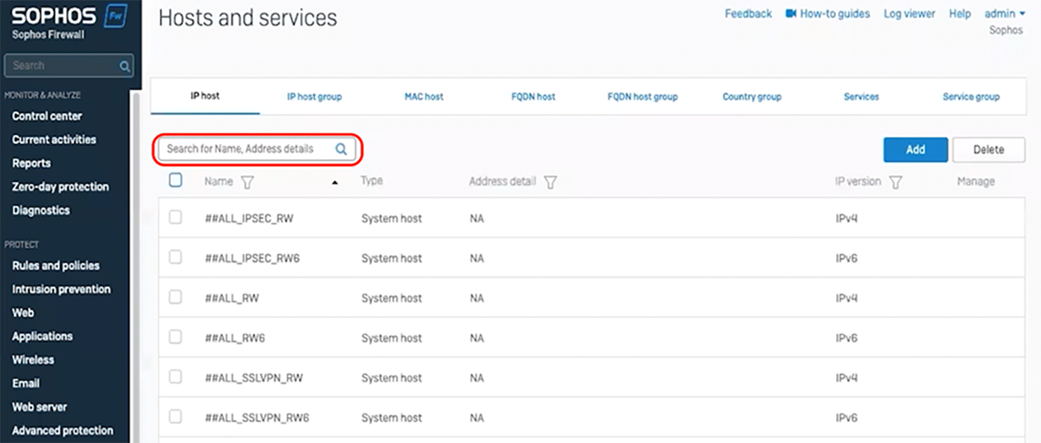 Billet inspiré de Sophos Firewall v19.5 hosts and services search, sur le Blog Sophos.