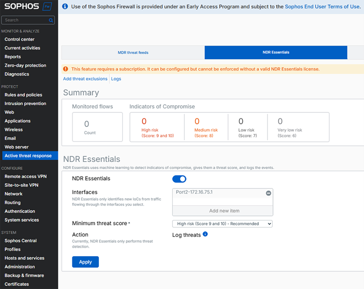 Les produits NDR existent depuis de nombreuses années et Sophos NDR fait partie de notre gamme de produits MDR/XDR depuis début 2023. Cependant, avec SFOS v21.5, nous intégrons le NDR à Sophos Firewall, une première dans notre secteur, sans frais supplémentaires pour les clients Sophos Firewall avec Xstream Protection.