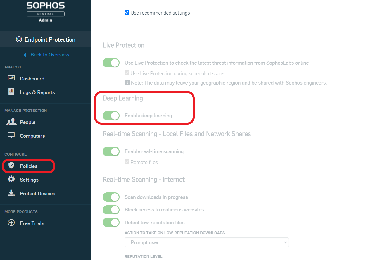 If you’re running Sophos Intercept X you can relax knowing that you are automatically protected against ProLock, as all three of the above features are enabled by default in our recommended settings.