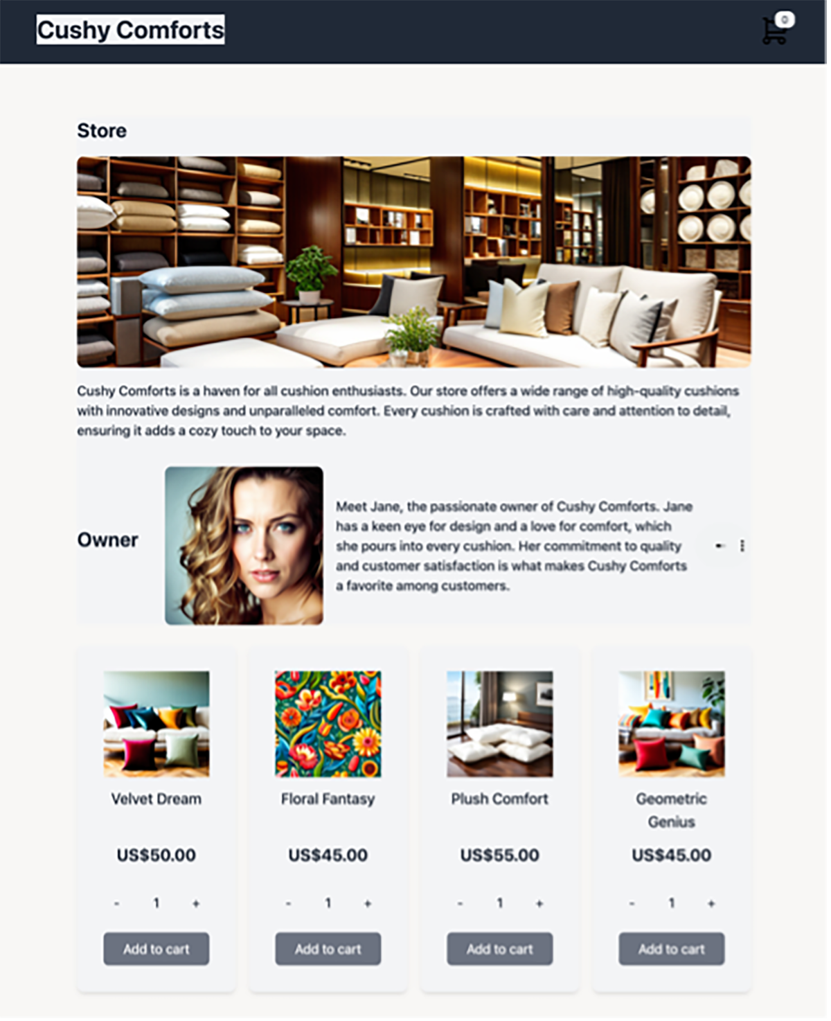 - Agent de données (data agent) : génération de fichiers de données pour la boutique, le propriétaire et les produits à l’aide de GPT-4.